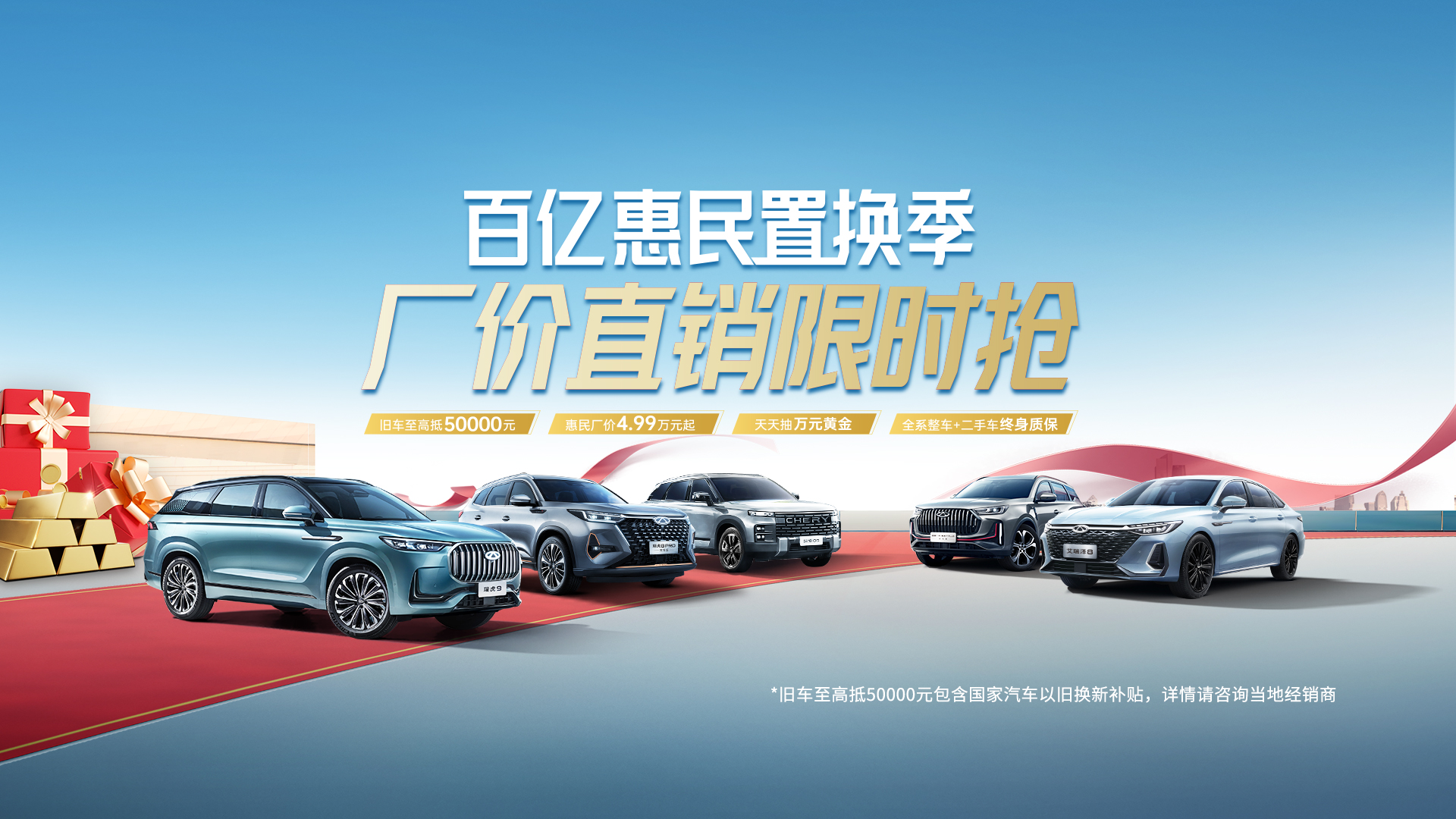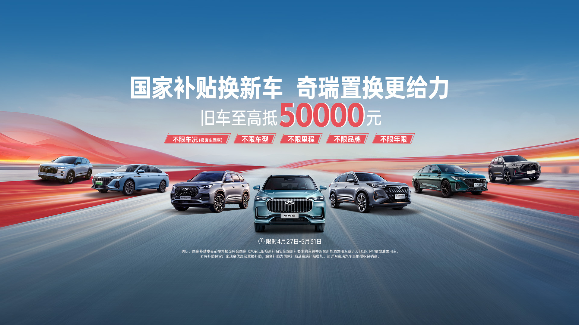 了解详情限时加送购置税,至高减30000元!奇瑞百亿补贴置换季钜惠到底